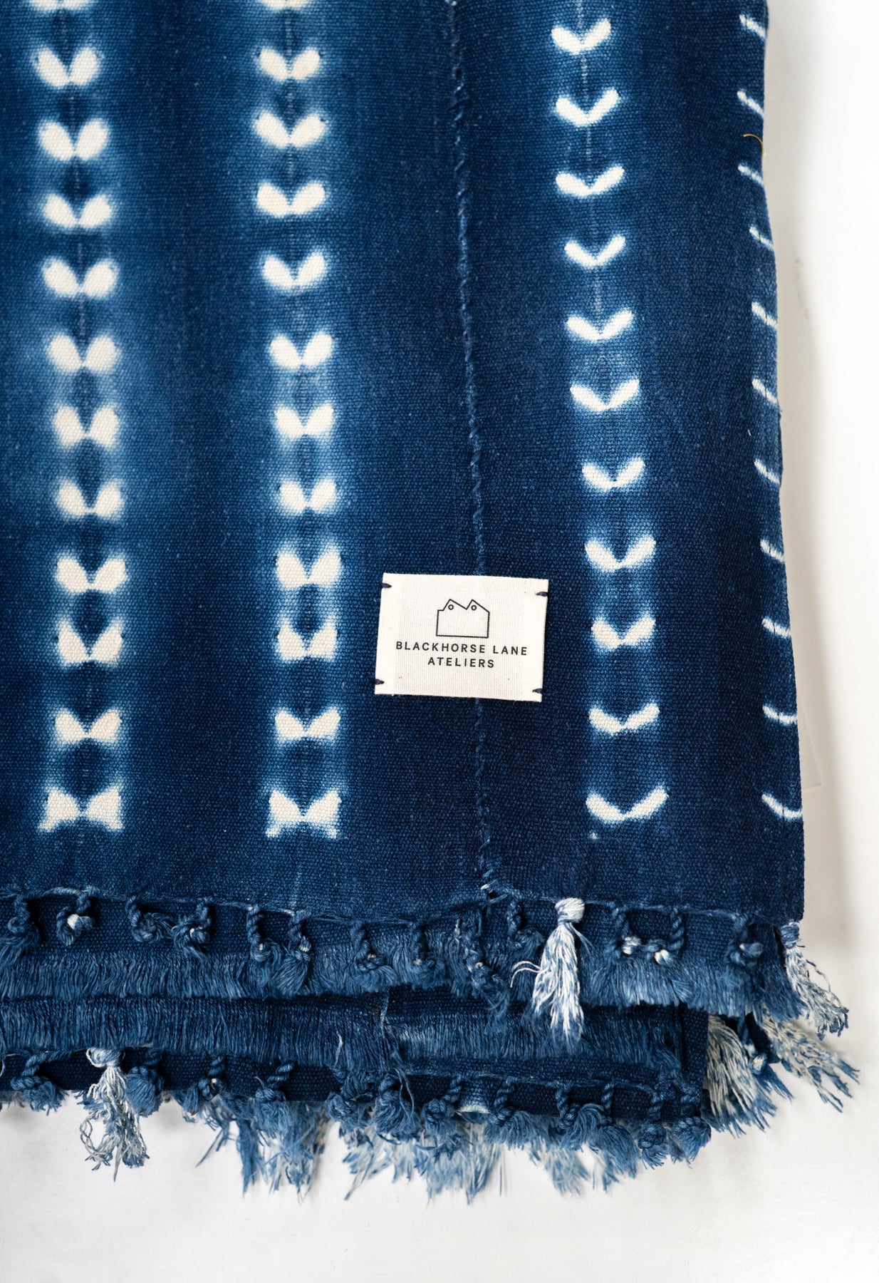 Our unique hand-dyed indigo cotton scarves are a one-of-a-kind masterpiece, showcasing various West African traditional patterns and a special touch. Due to their handmade nature, expect delightful individual differences.
