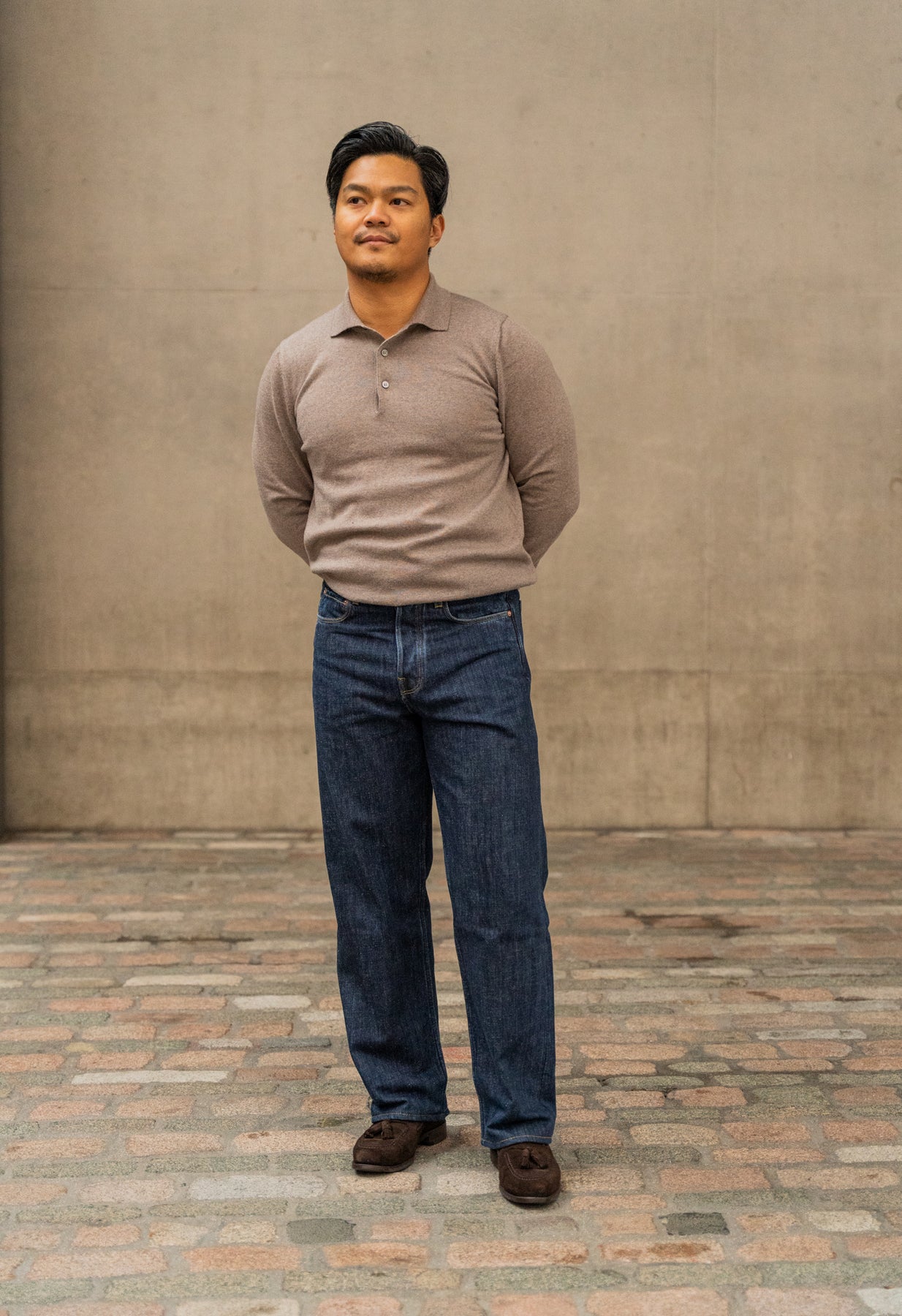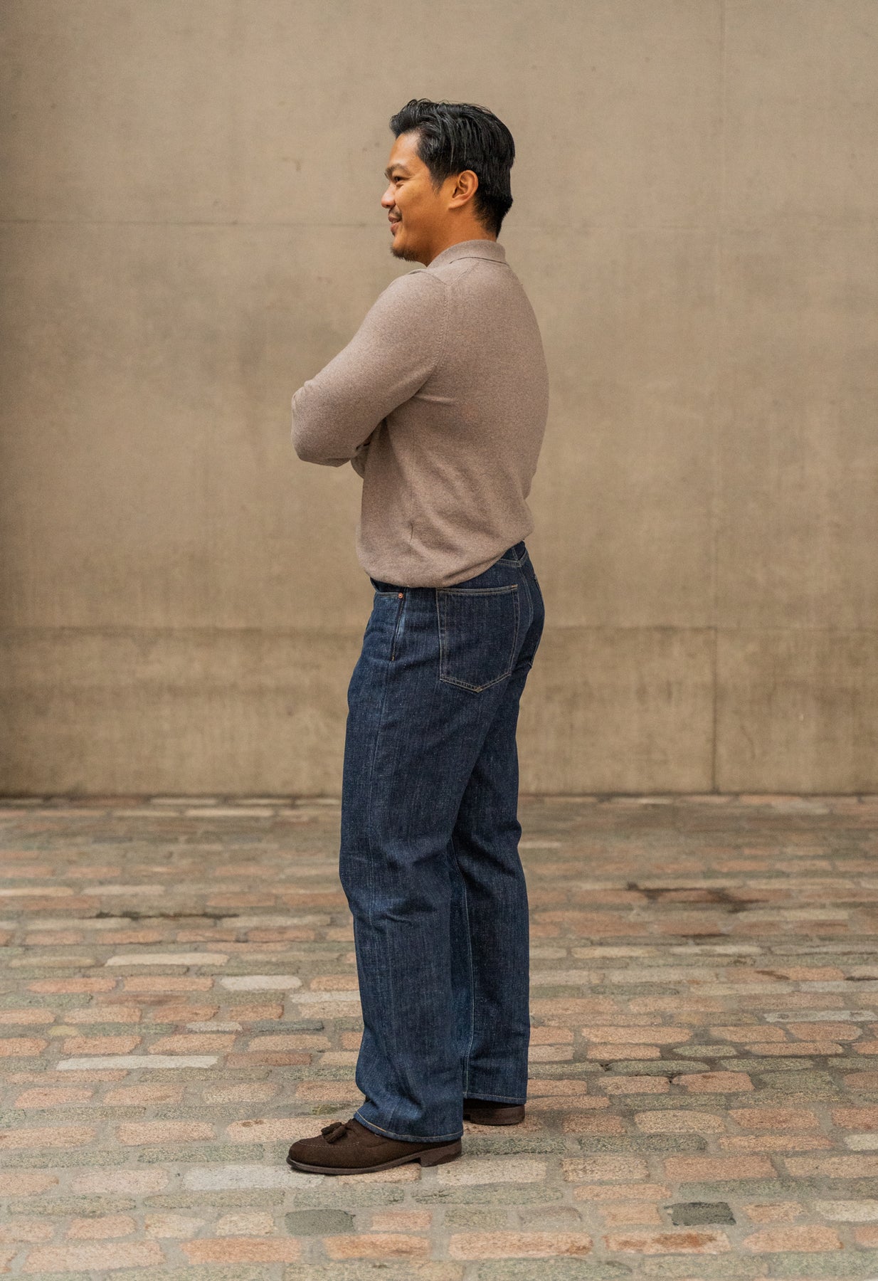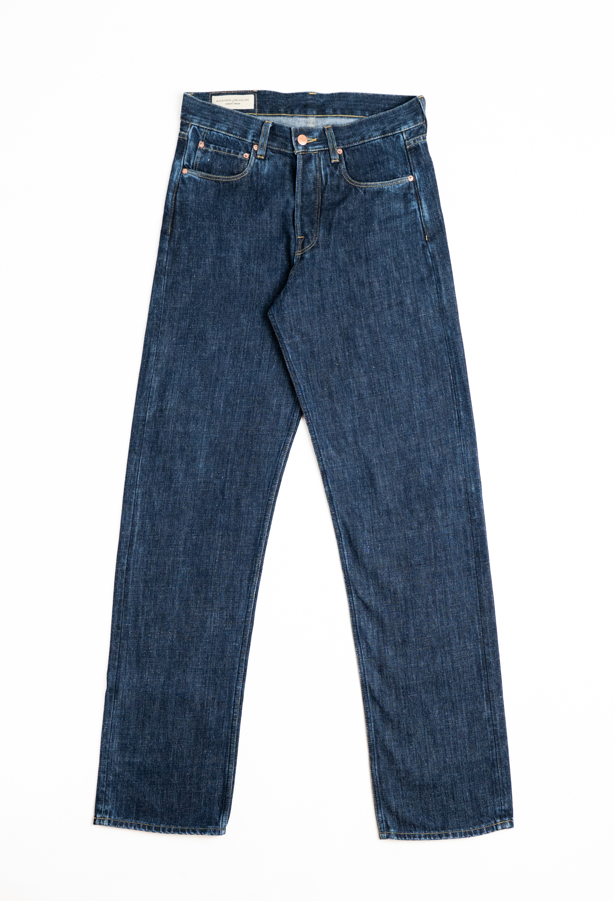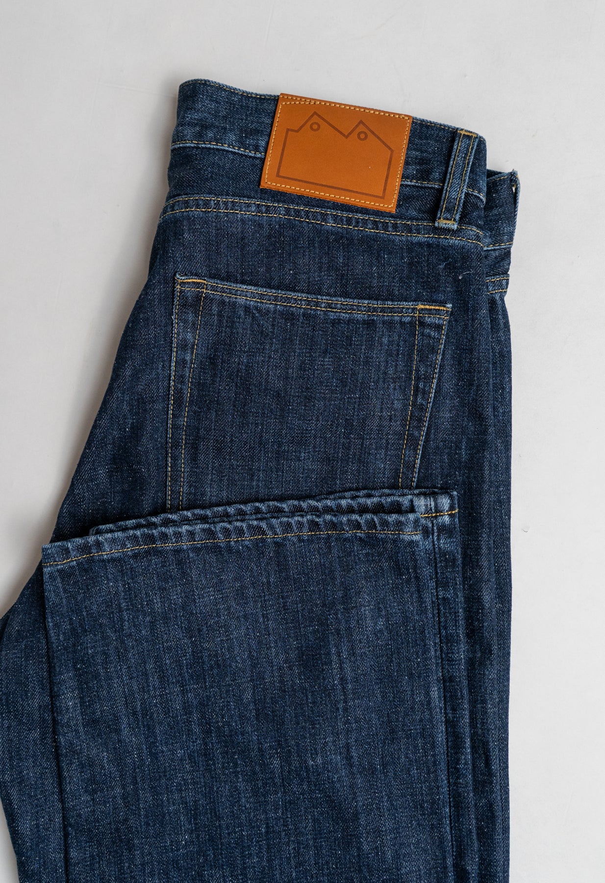 Our E6 cut has a high rise, the waistband is slightly higher at the back allowing for comfort. This cut is a true straight leg with a very subtle taper. Perfect for anyone who wants a relaxed jean.