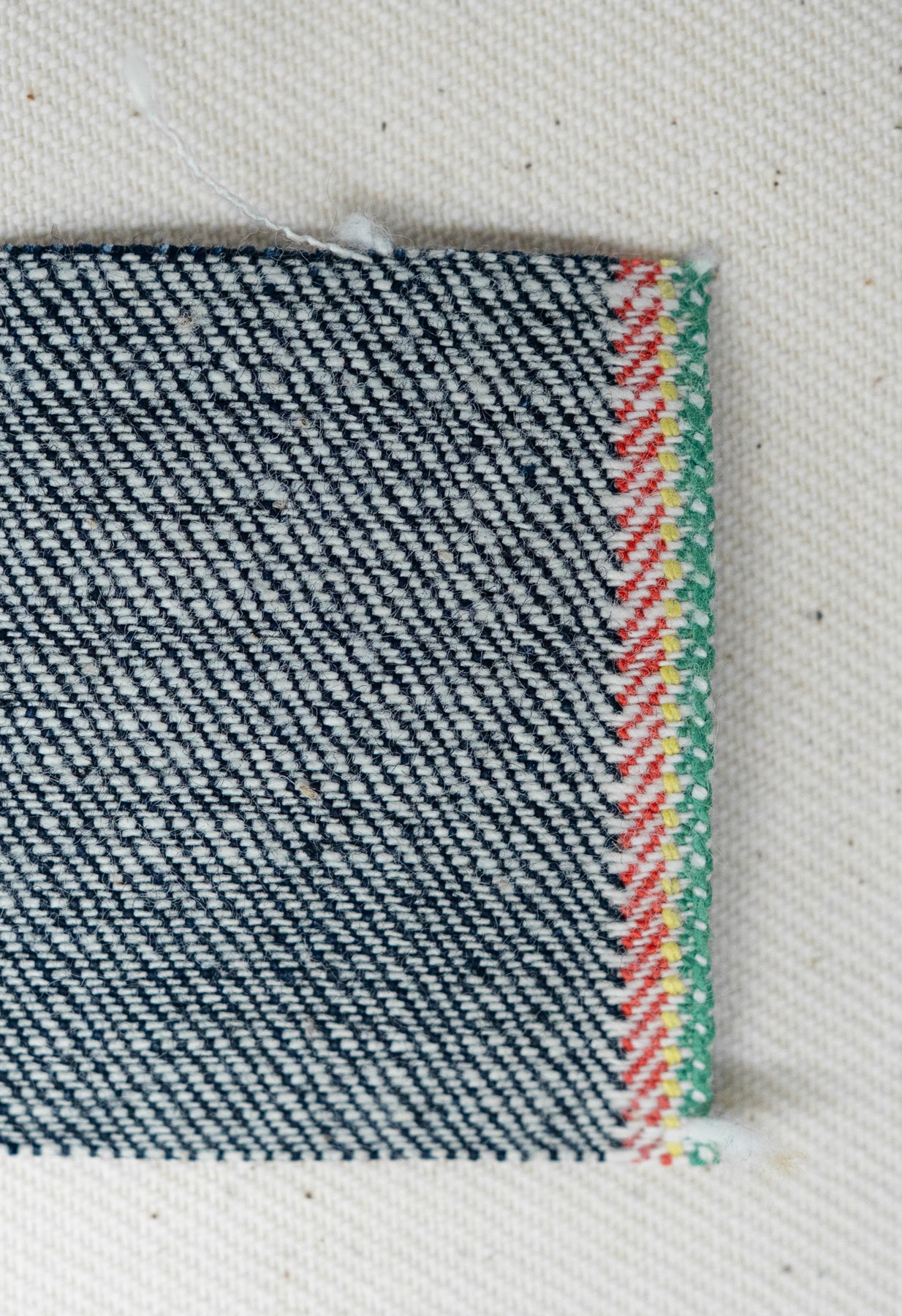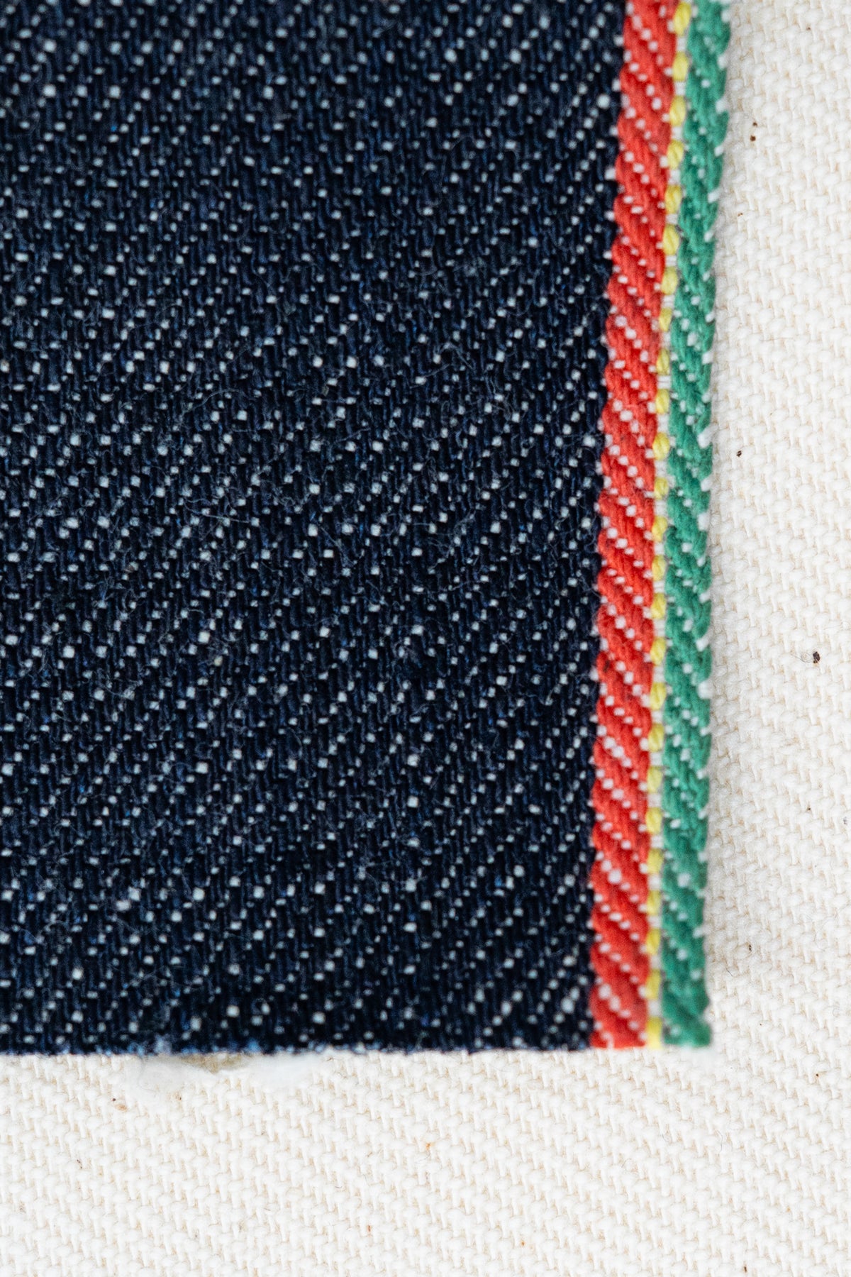 Starchy and slightly hairy indigo selvedge denim, perfect for making jeans and jackets and other items.