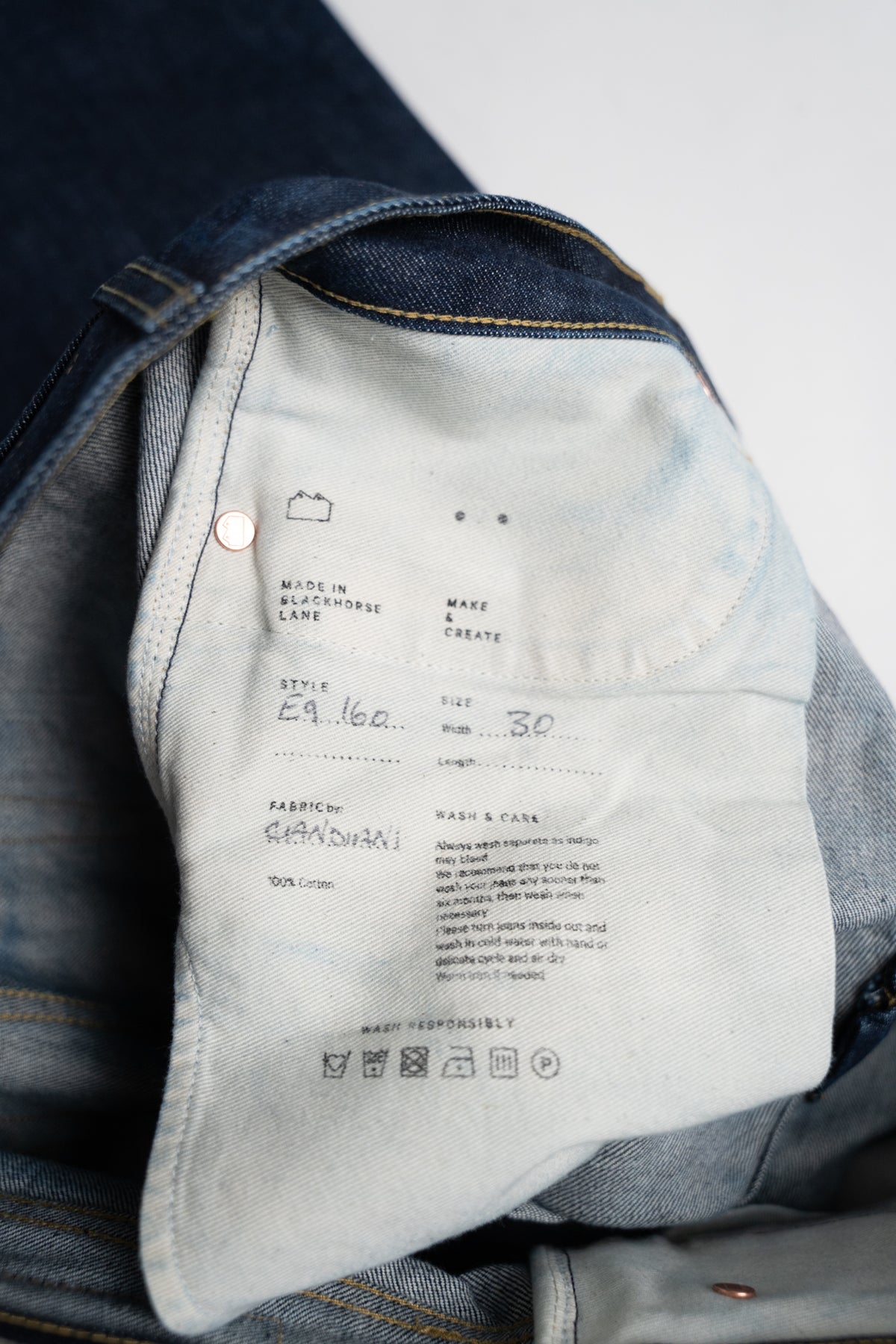 • 15.5oz Rinsed Indigo Selvedge denim Woven by Candiani Mills in Italy