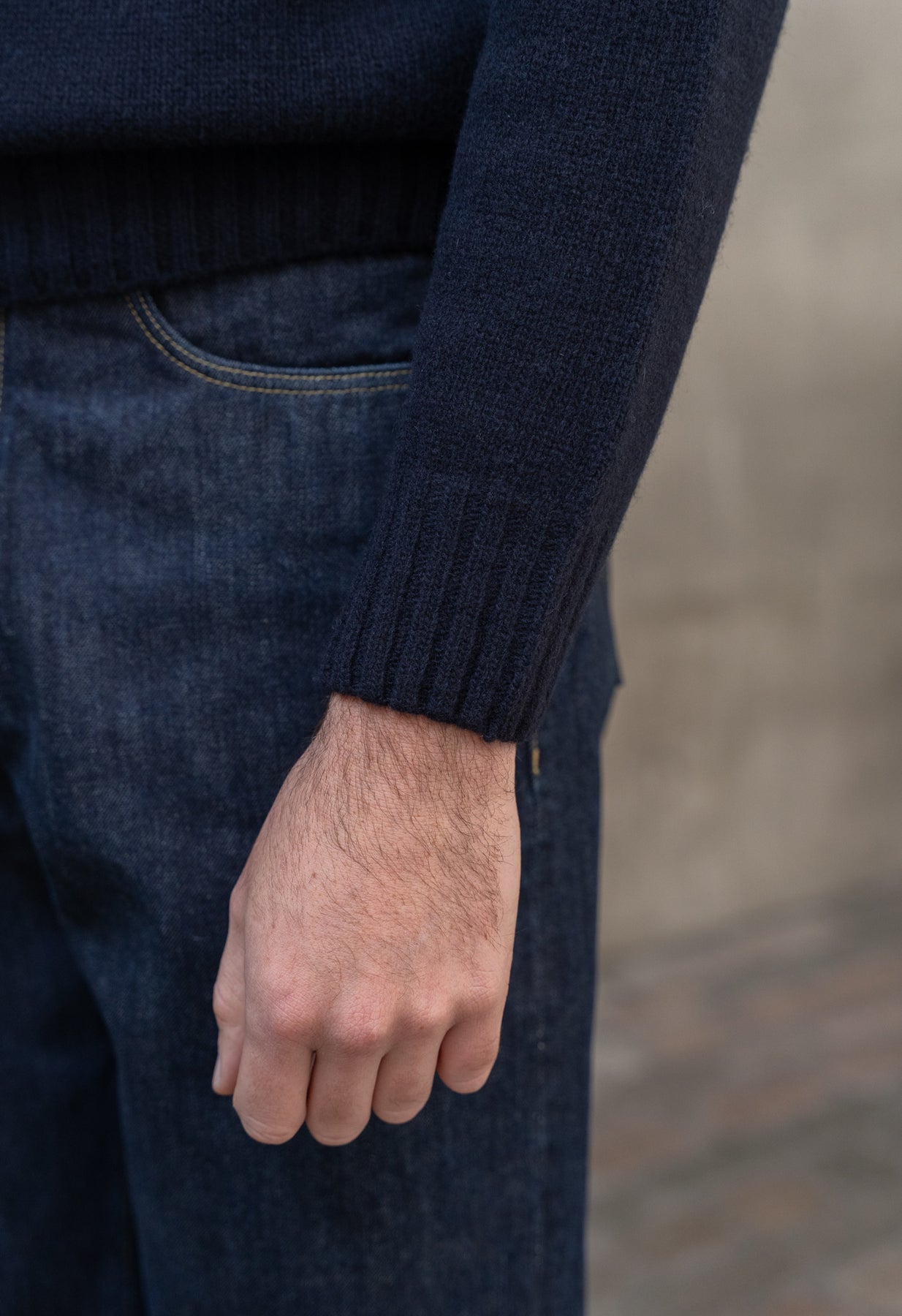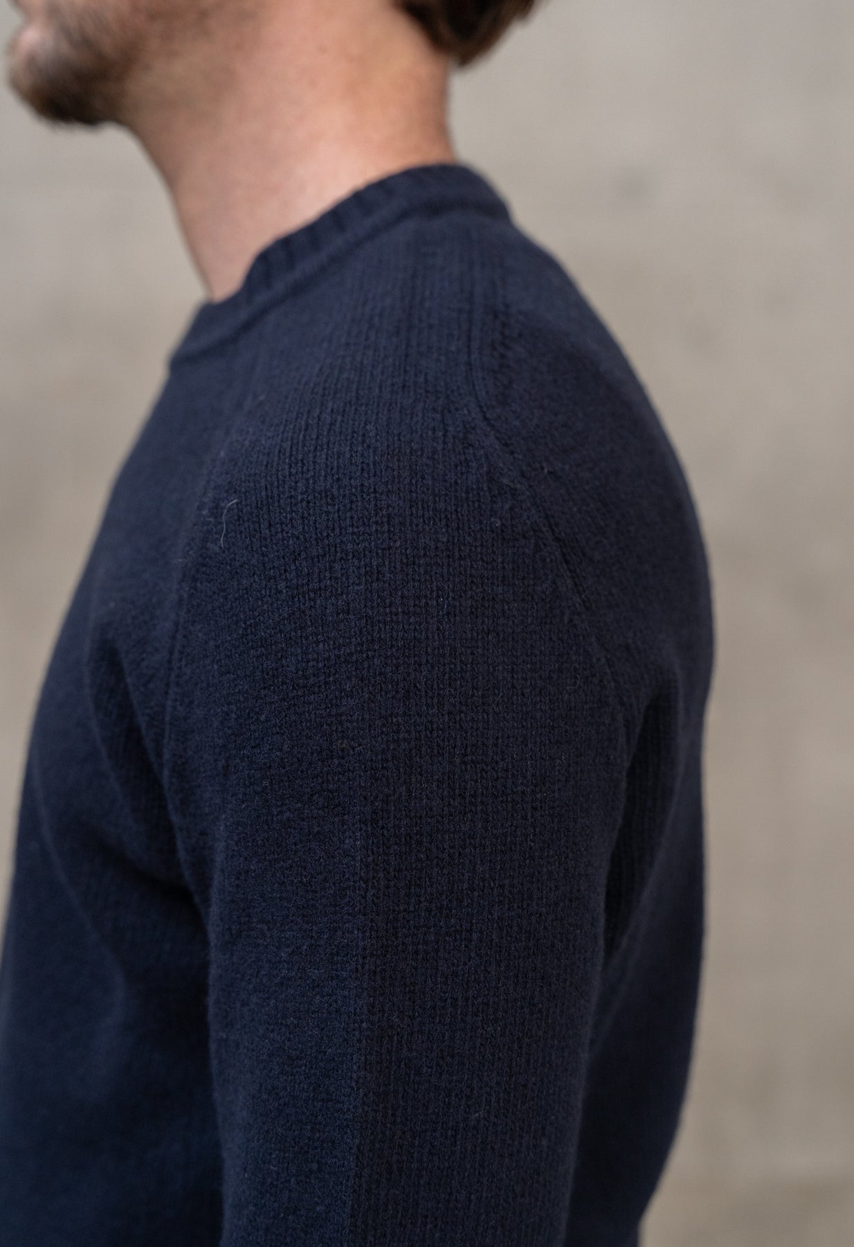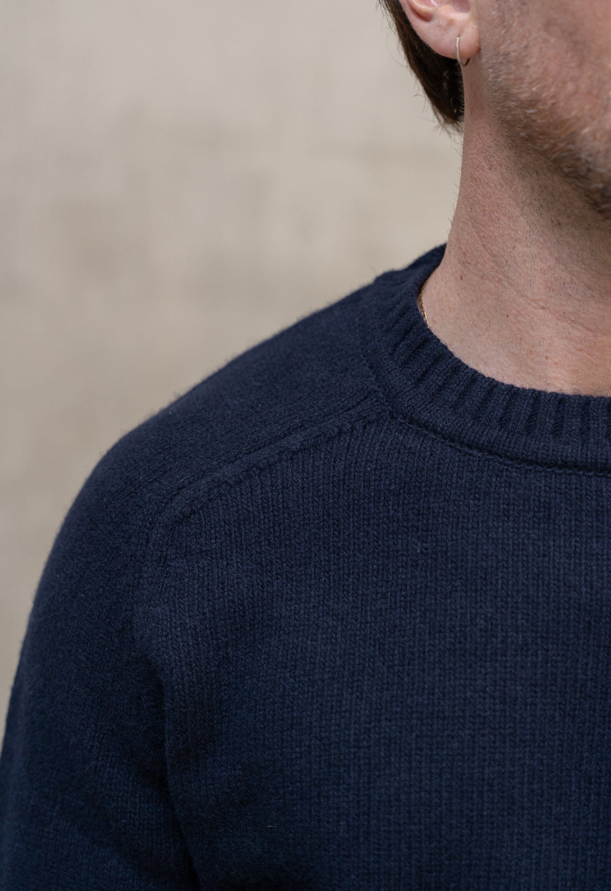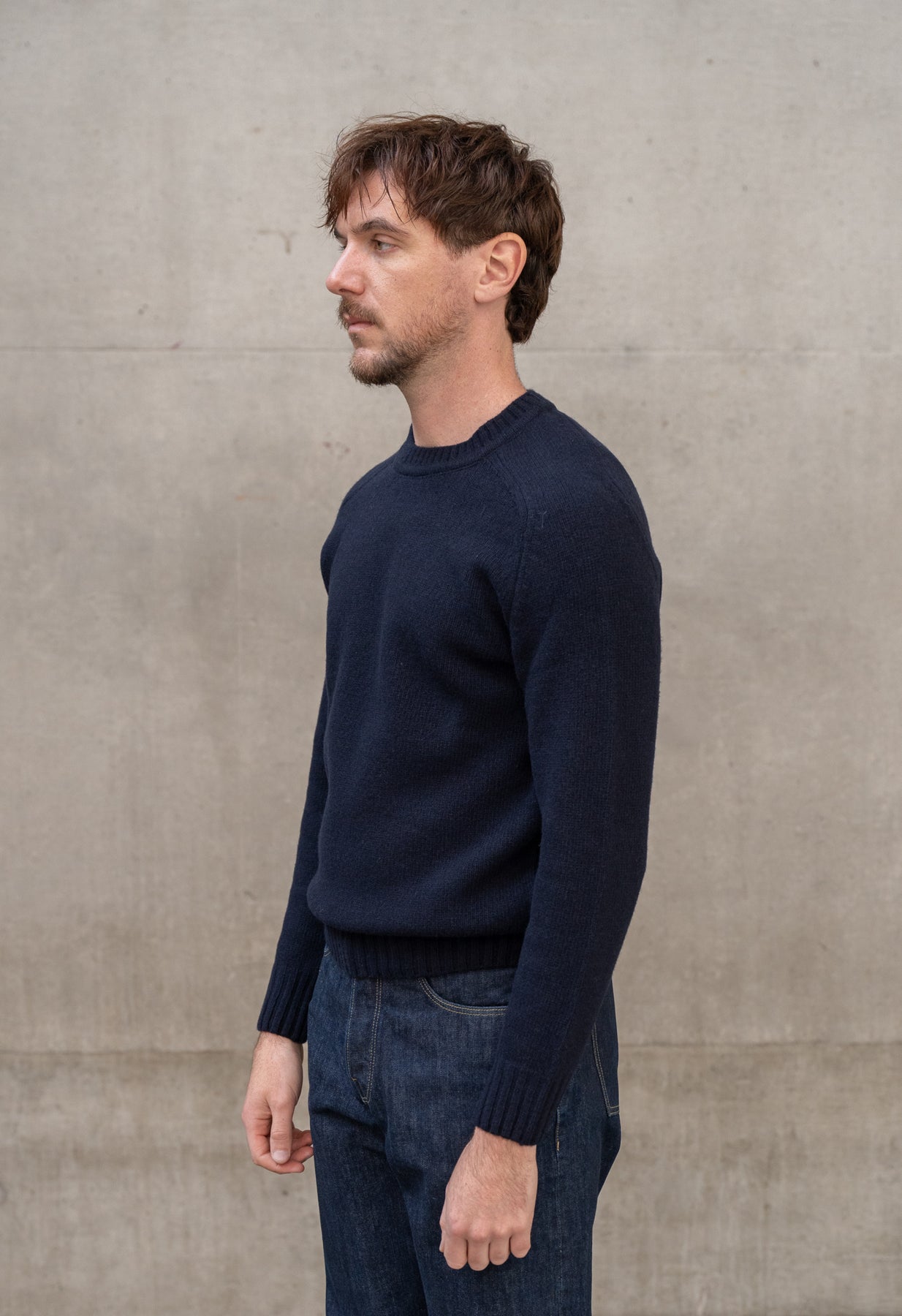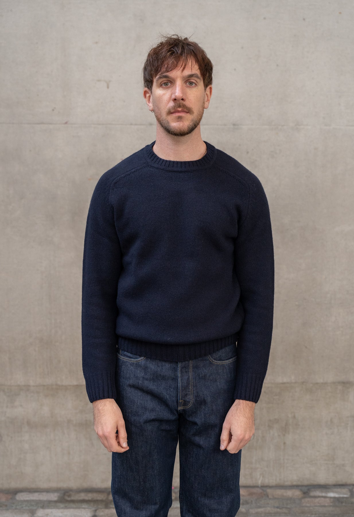 A classic crewneck jumper knitted from soft lambswool for warmth and comfort. It features a traditional saddle shoulder for ease of movement and refined shape, finished with ribbed cuffs and hem for a clean, timeless look.
