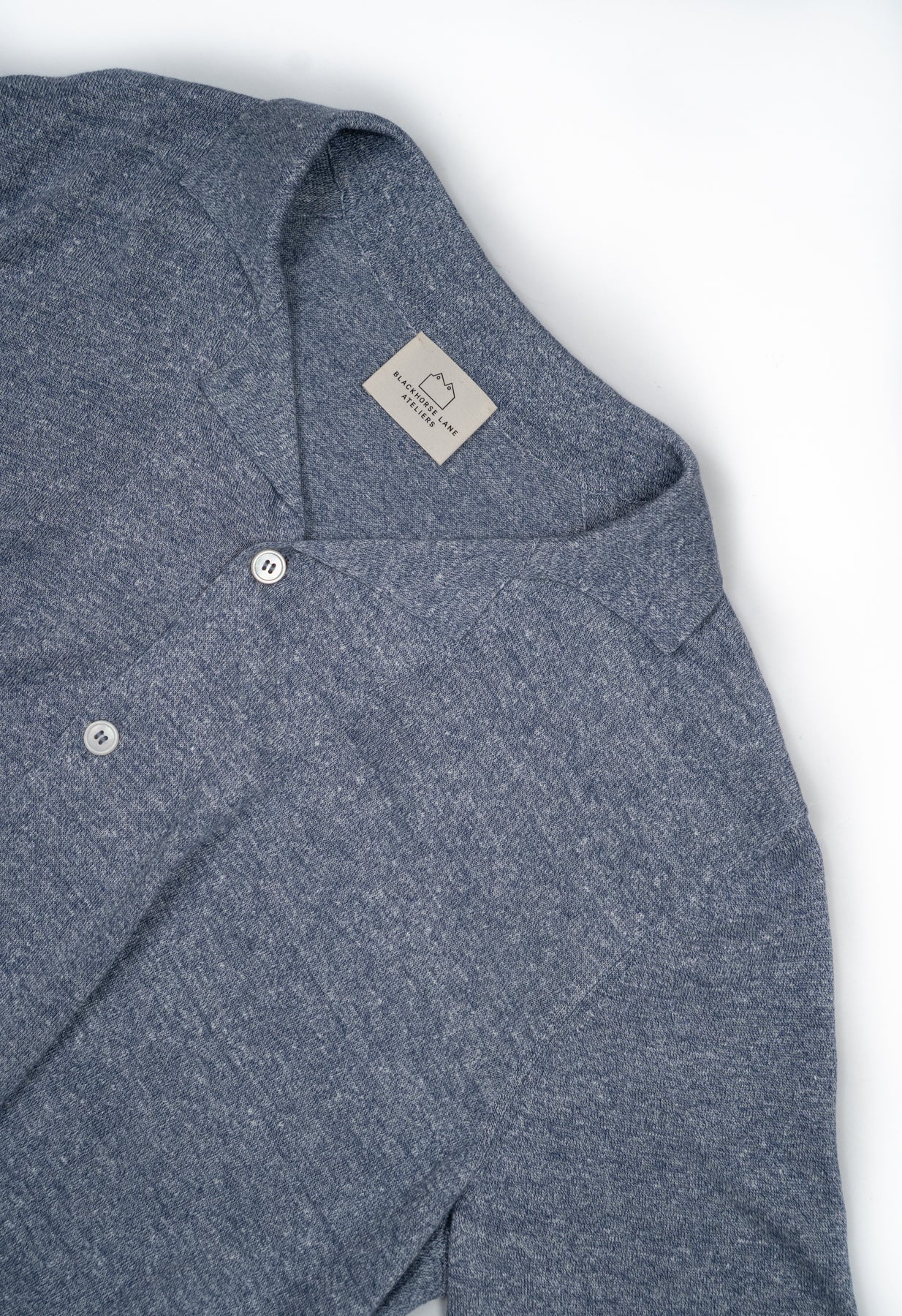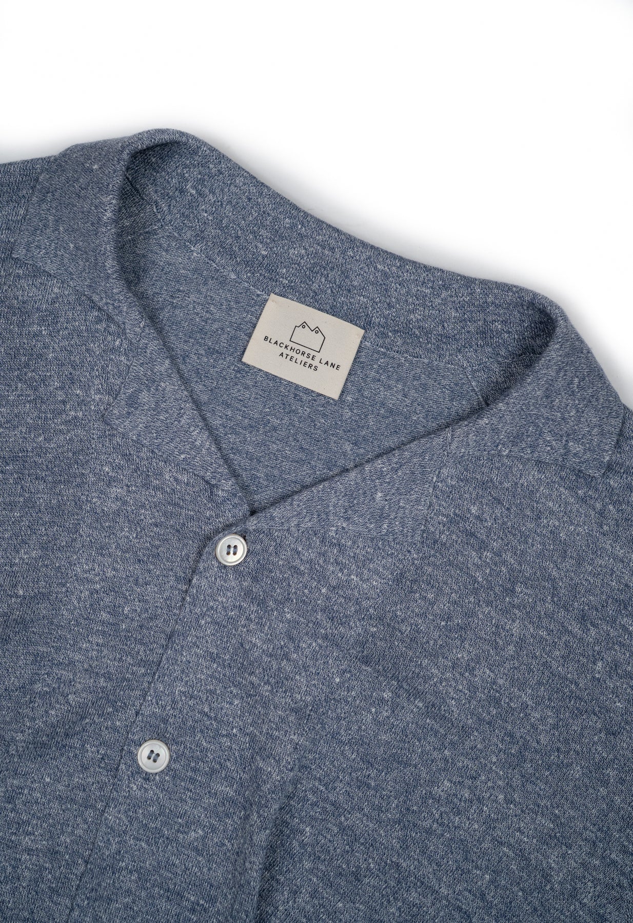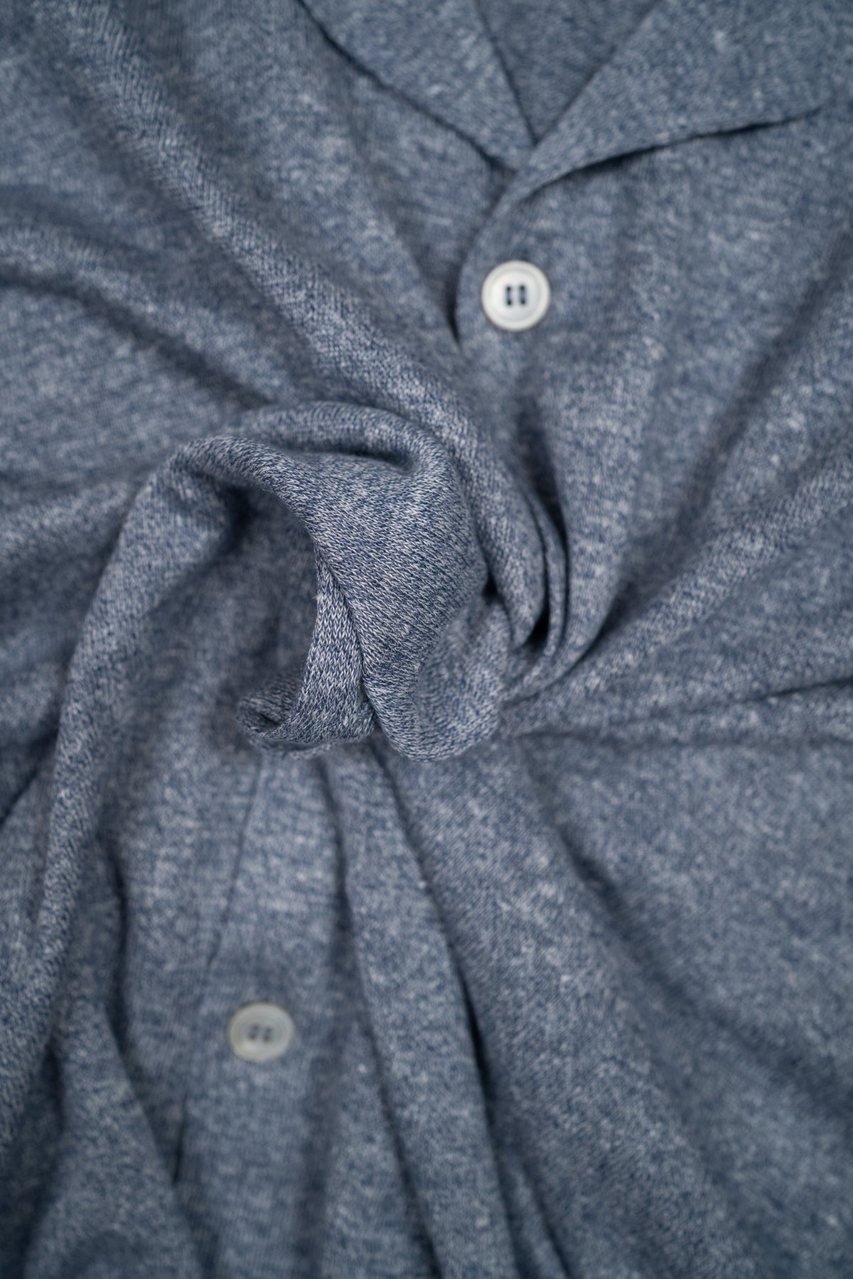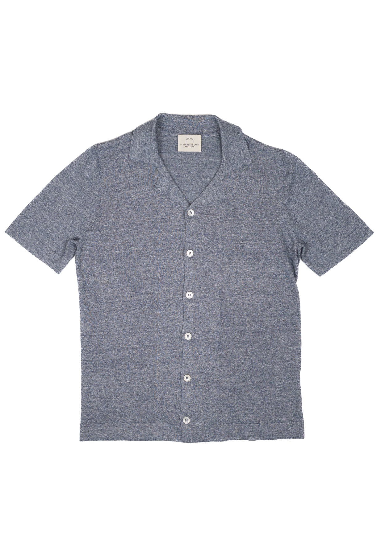 Lightweight and breathable, this knit shirt features a flat open collar, regular cut, and subtle melange texture—ideal for warm-weather dressing and effortless style.