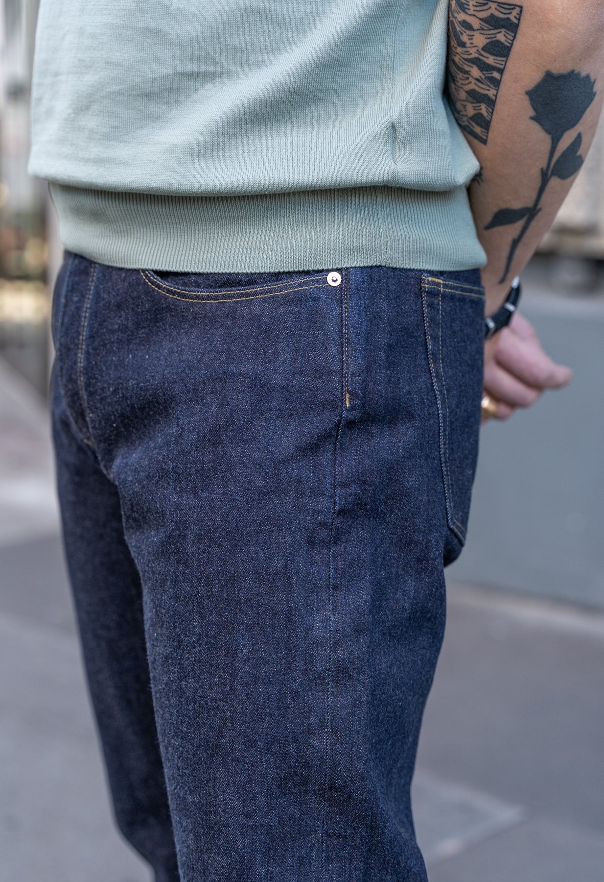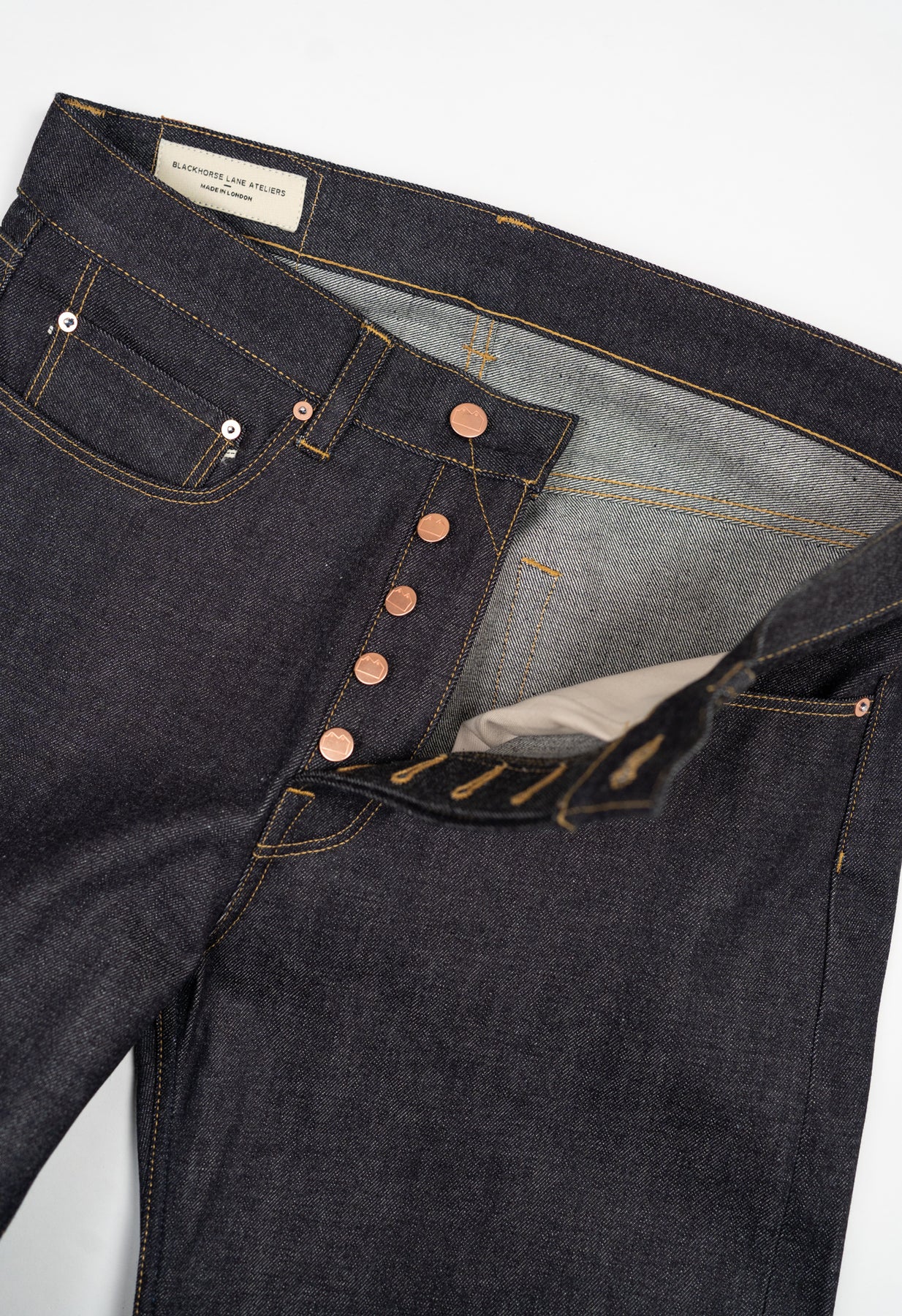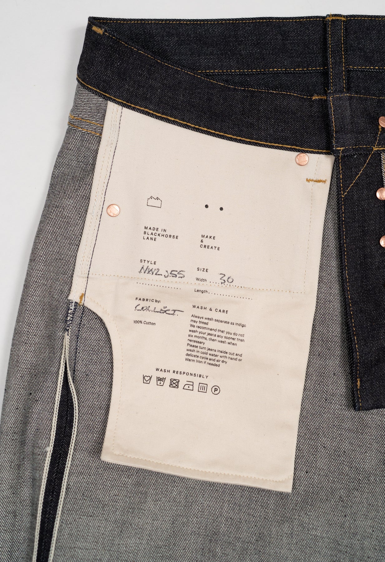 Premium engineered detailing and beautifully grainy and characterful 14oz rinsed selvedge denim from Collect Mills.