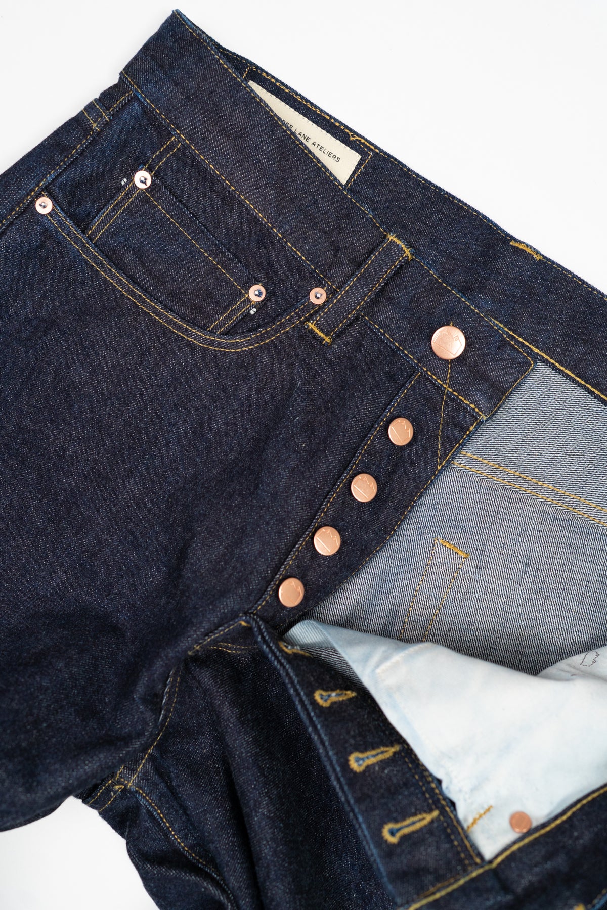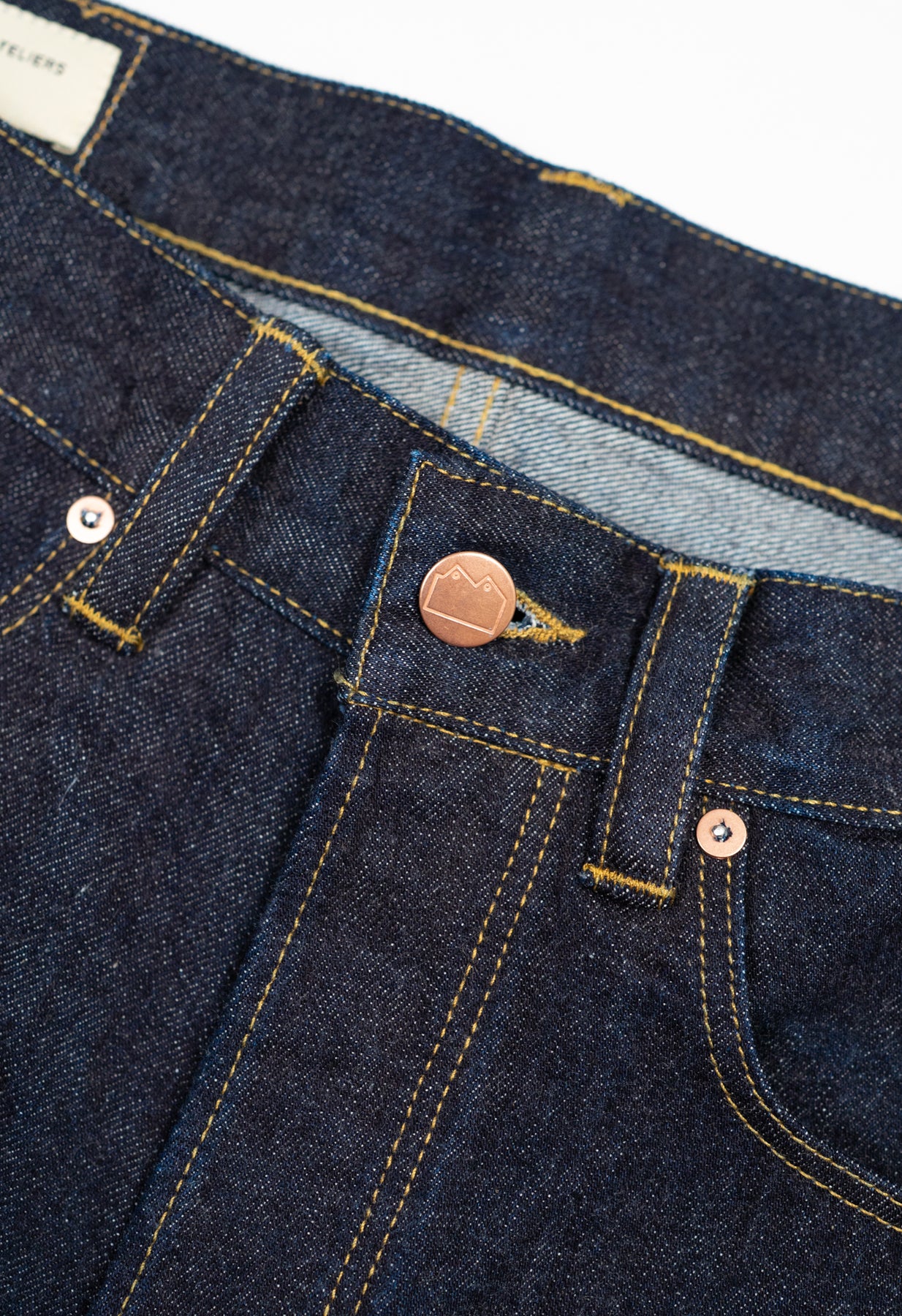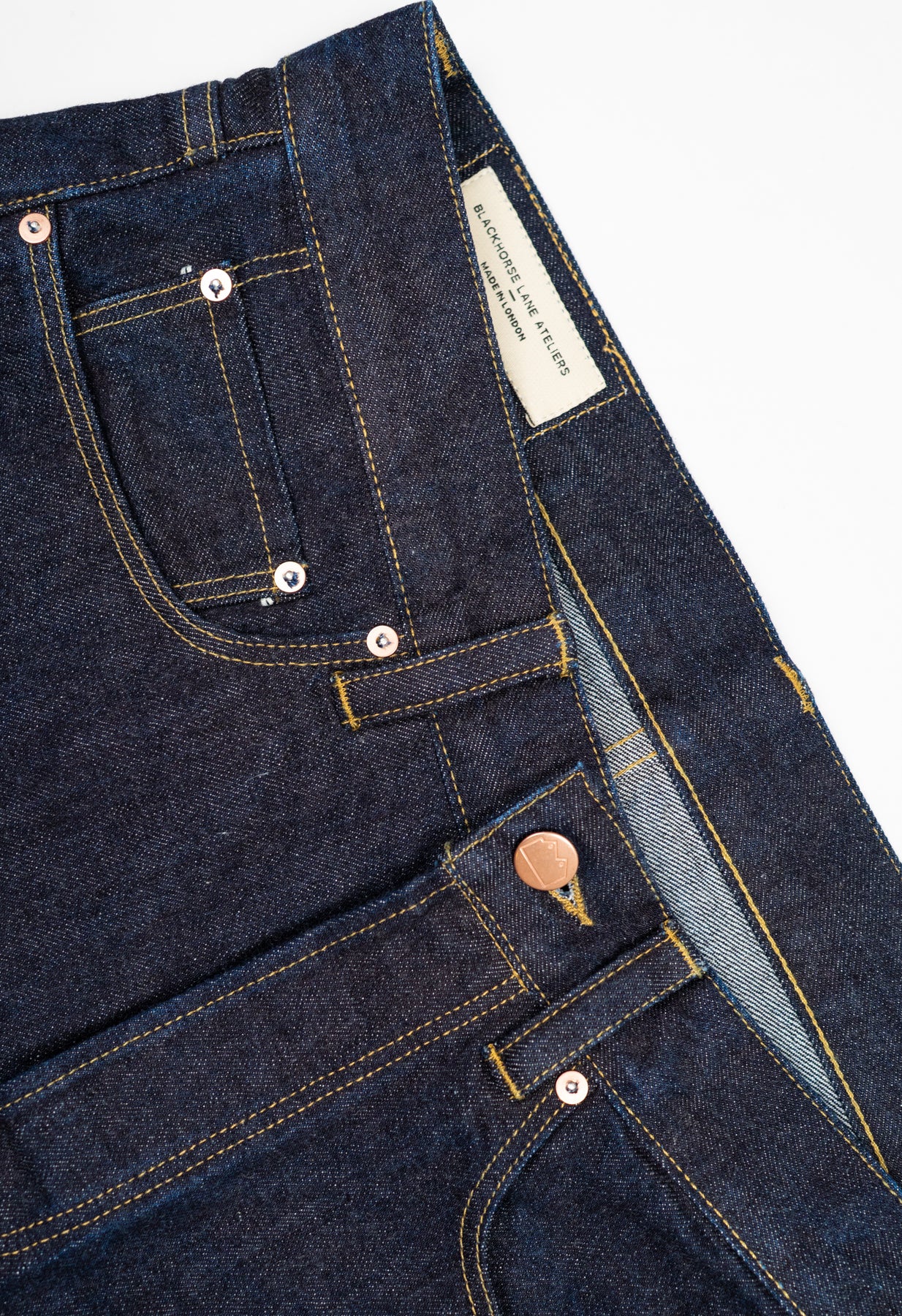 • 14oz rinsed selvedge denim woven in Japan by Collect Mills