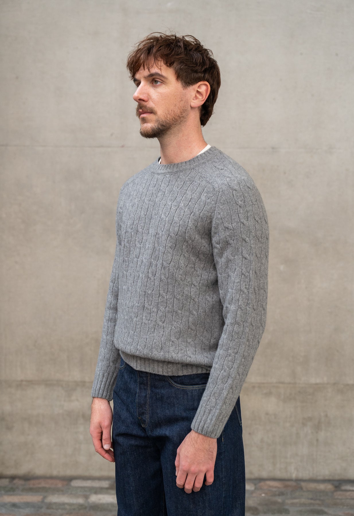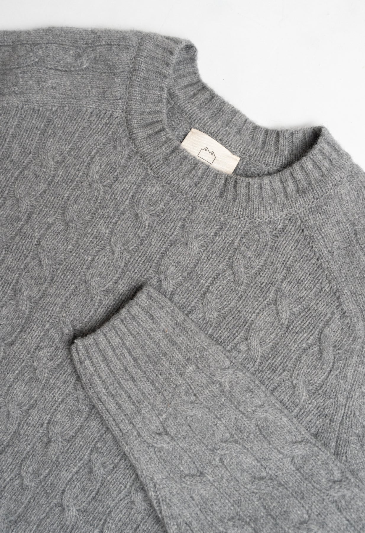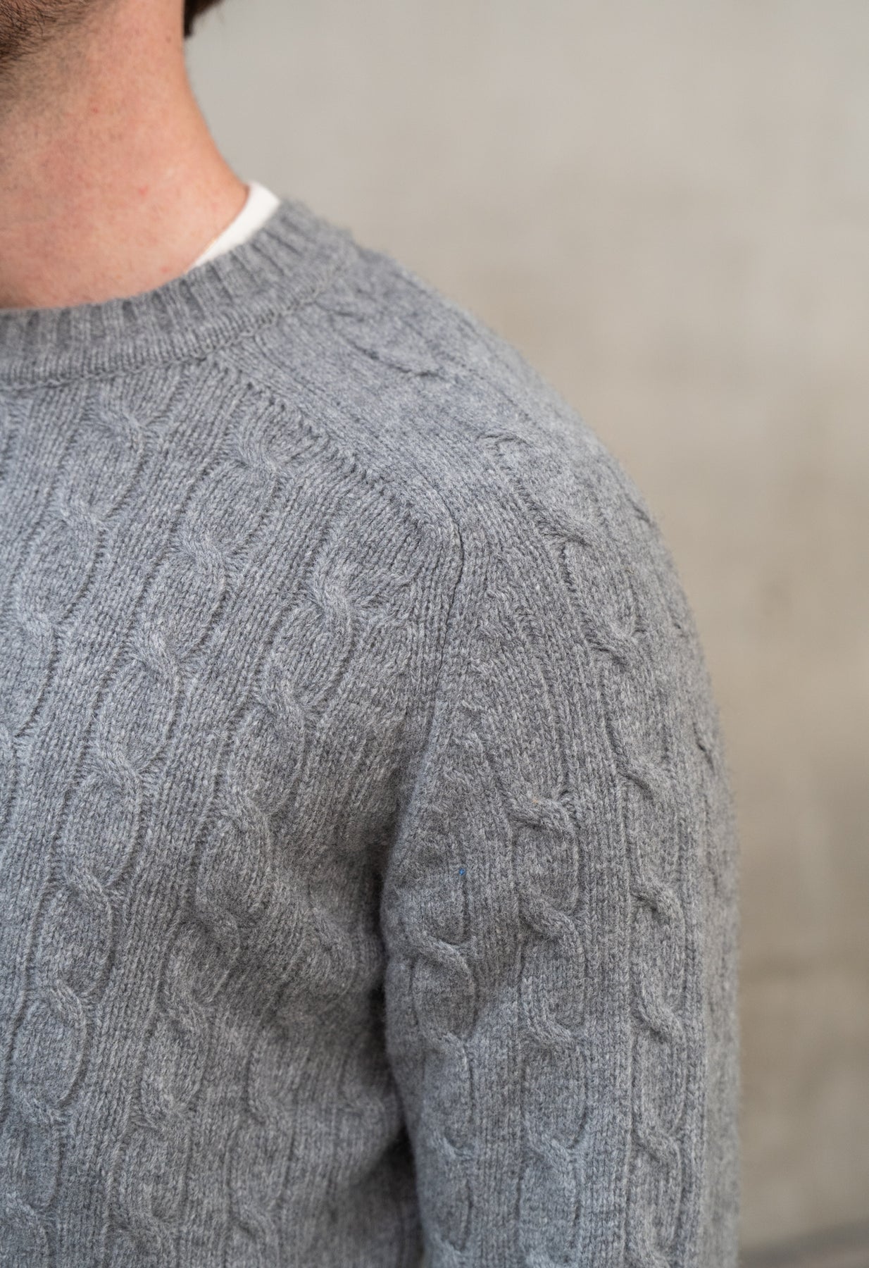 LAMBSWOOL CABLE KNIT CREW NECK JUMPER GREY