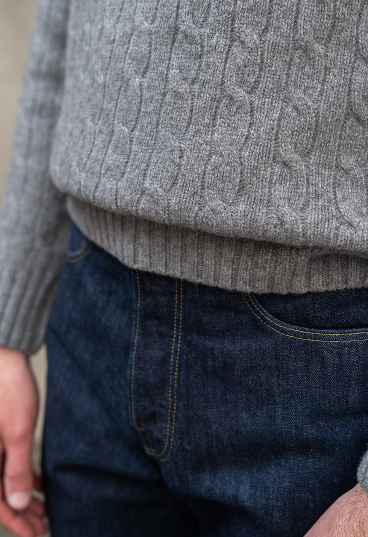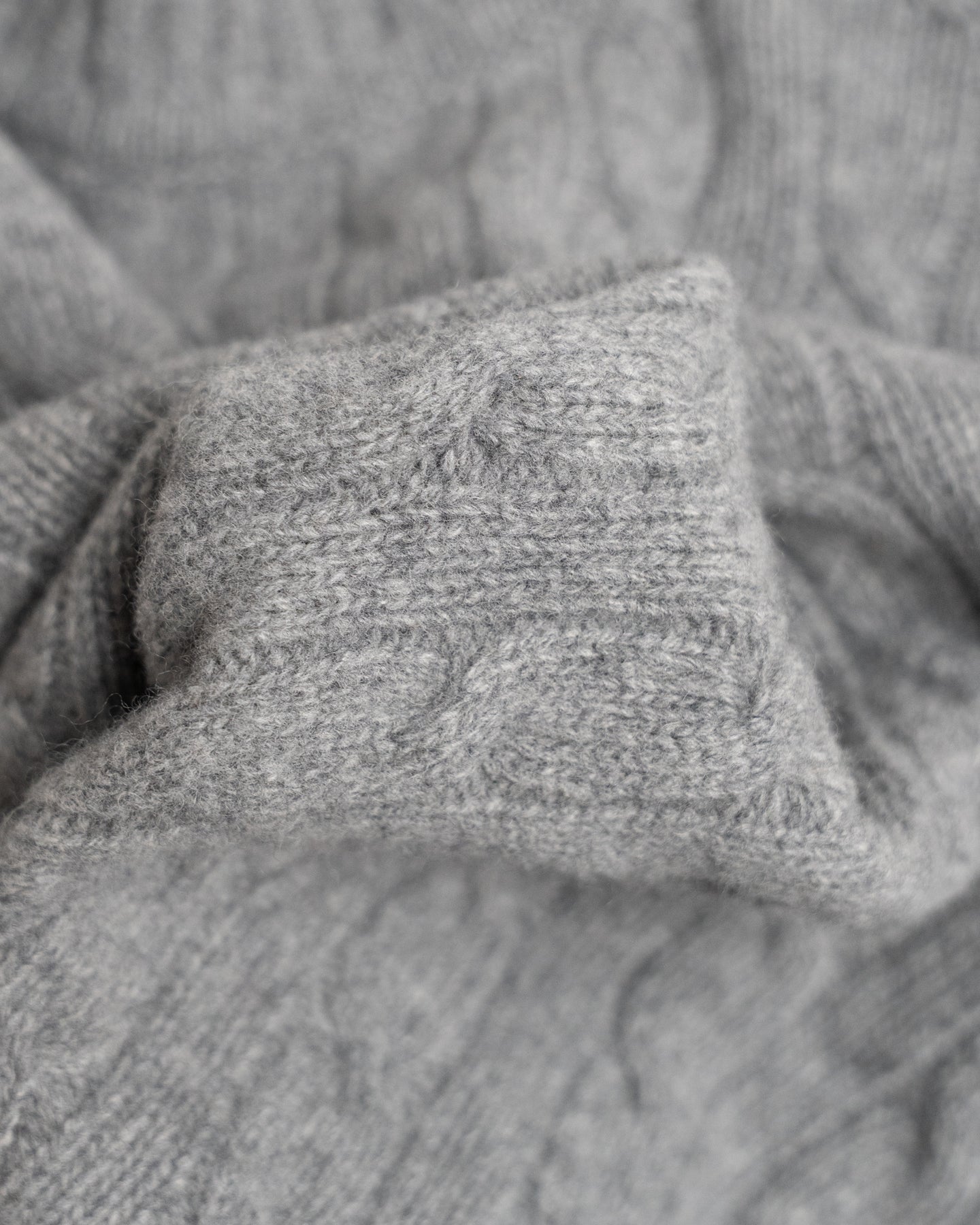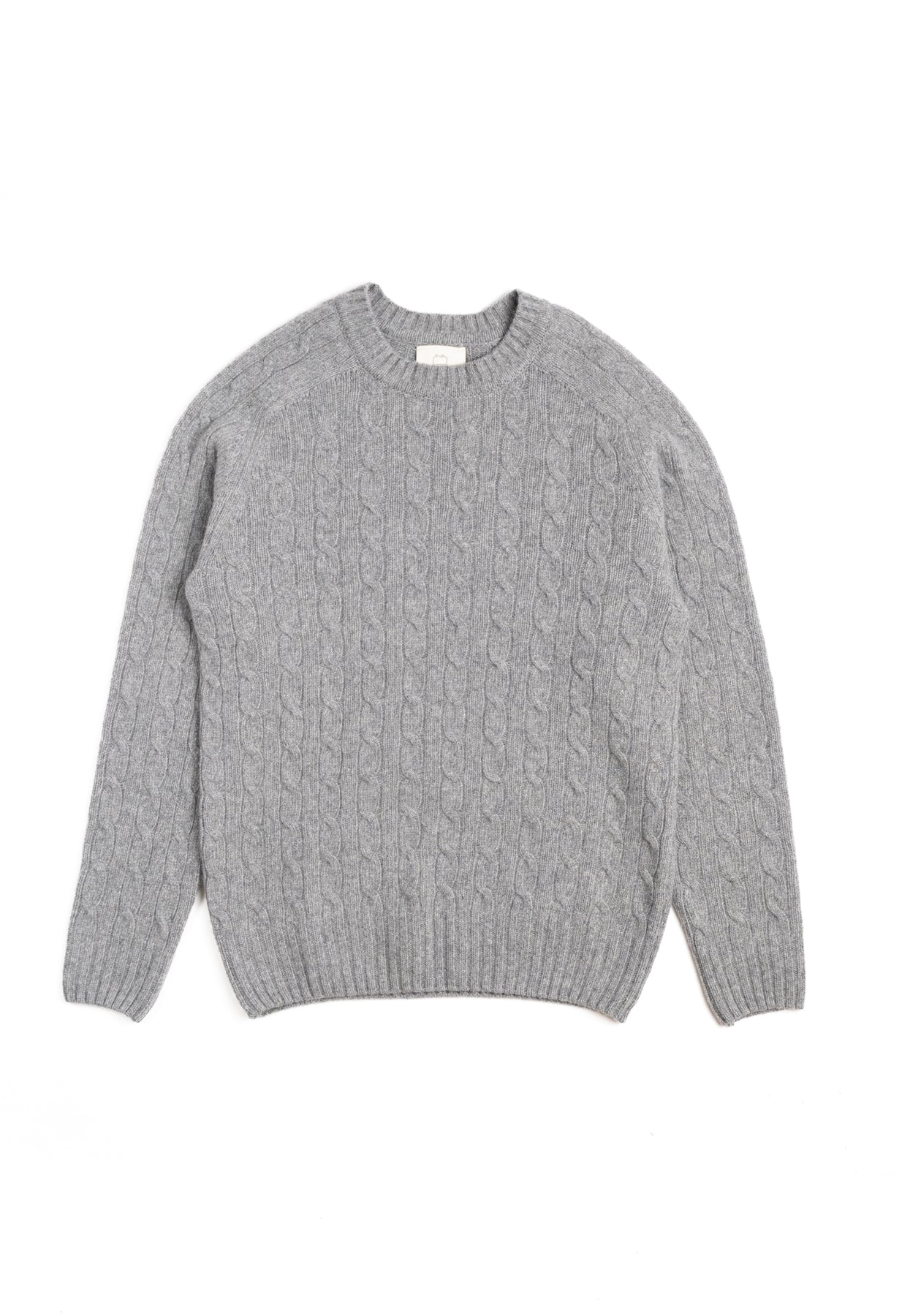 LAMBSWOOL CABLE KNIT CREW NECK JUMPER GREY